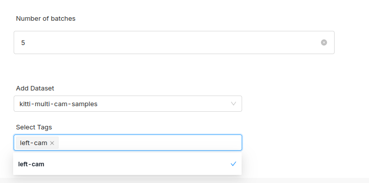 ファイルにタグを追加している場合は、それらを使ってデータをフィルタリングすることもできます。例えば、同じデータセットに複数のカメラからのデータを追加しており、左カメラのデータだけでタスクを作成したい場合は、left-camのようにタグを付けてここでそのタグを選択できます。