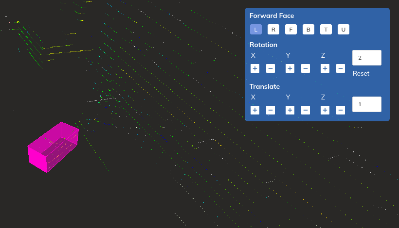 이 섹션에서는 큐보이드를 X, Y, Z 축으로 이동할 수 있습니다.