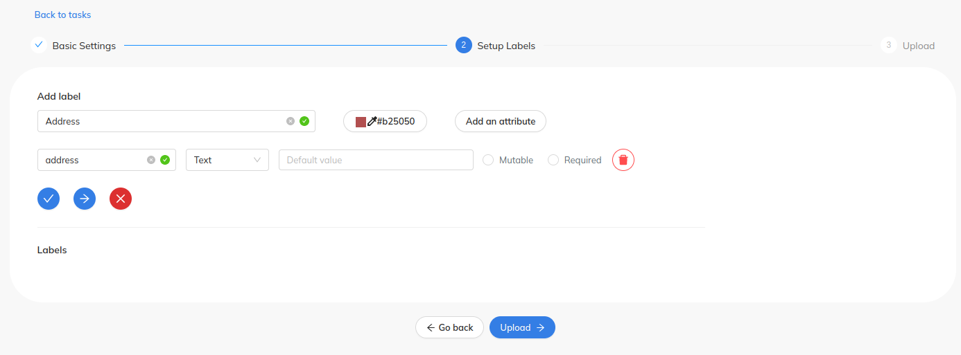OCR용 이미지를 레이블링하려면 태스크를 생성할 때 레이블에 다음과 같은 속성을 추가하세요: text 유사한 유형입니다. 이미 태스크를 생성한 경우에는 편집하여 기존 레이블에 새 속성을 추가할 수도 있습니다.