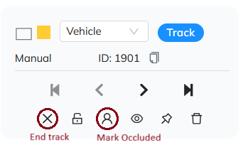 트랙이 끝났을 때(객체가 시야에서 벗어날 때) 오른쪽 사이드바의 객체 카드에서 트랙 종료(객체 카드의 첫 번째 버튼) 버튼을 클릭하여 트랙의 끝을 표시하세요. 이렇게 하면 이후 프레임으로 라벨 전파가 중지됩니다.
